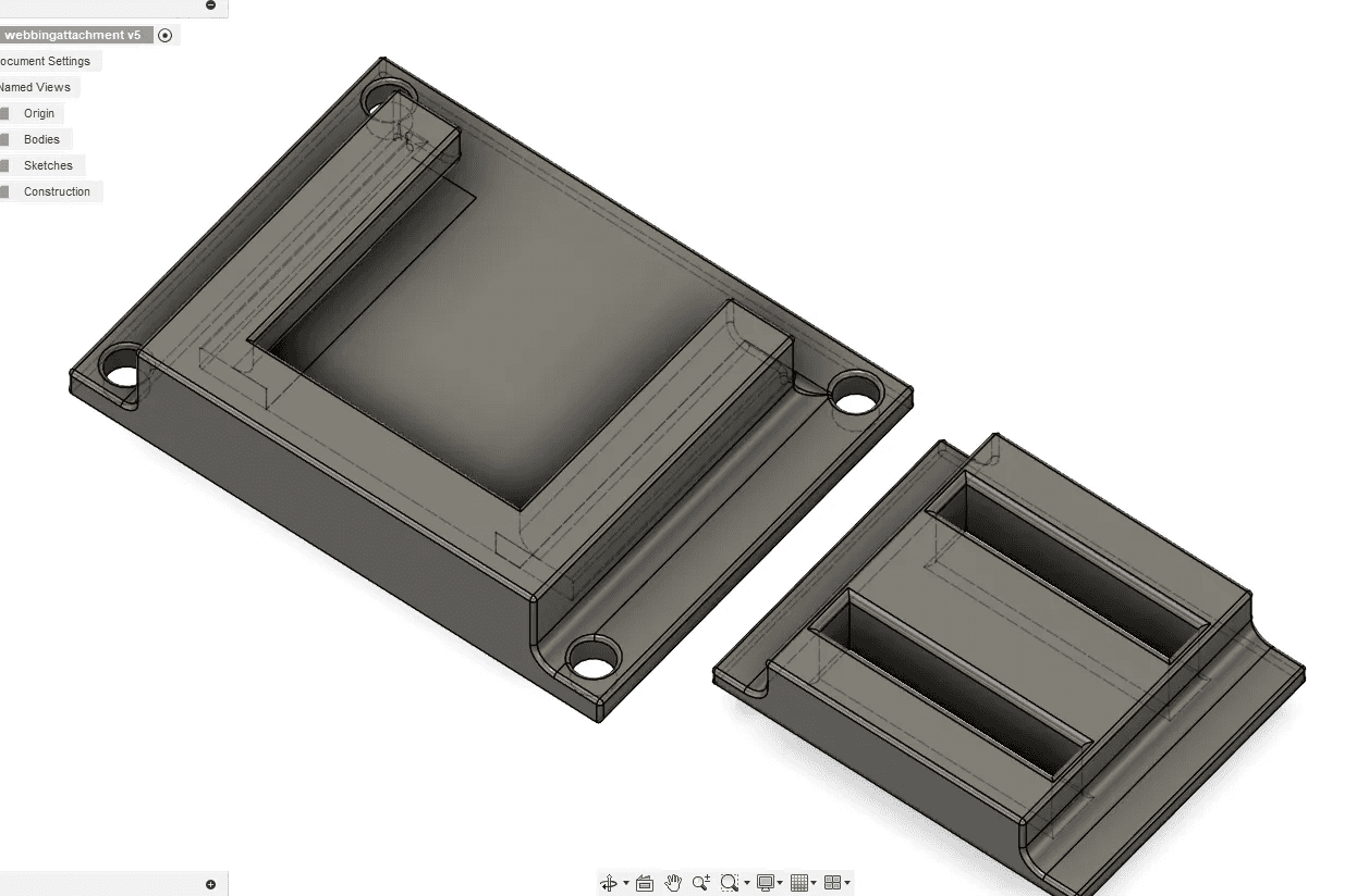 - Fusion 360 - Precision-engineered bracketry with tolerance-controlled assembly features for webbing