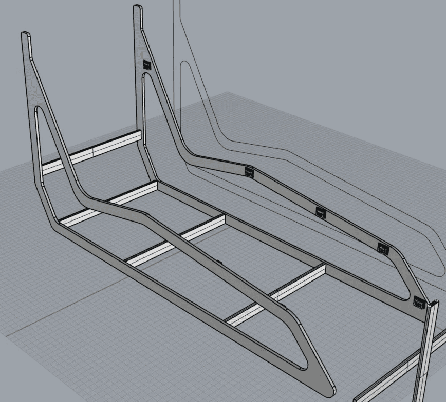 - Rhino 3D - Primary frame modeling emphasizing organic ergonomic curves